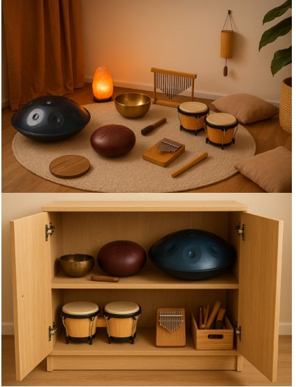Navrhujeme zřízení relaxačních koutků s muzikoterapií, protože by škola měla podporovat i duševní pohodu žáků. Hudba pomáhá uvolnit stres, zlepšuje náladu a podporuje soustředění i klima třídy. Koutek by mohli využívat žáci i během přestávek i po vyučování během kroužků a školních akcí. Relaxační koutky by přispěly k lepší atmosféře ve škole a prevenci přetížení žáků. Je to jednoduchý a účinný způsob, jak podpořit psychickou pohodu celé školní komunity. Do každé třídy by se pořídilo tongue drum (C dur), djembe, kalimba, tibetská mísa, chimes, box na ukládání a podsedáky.